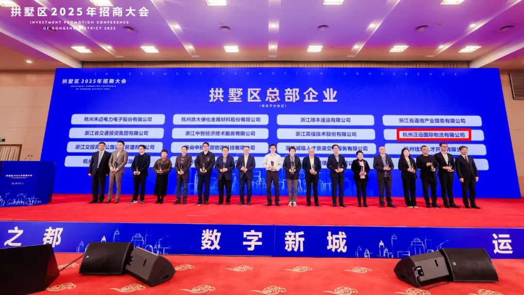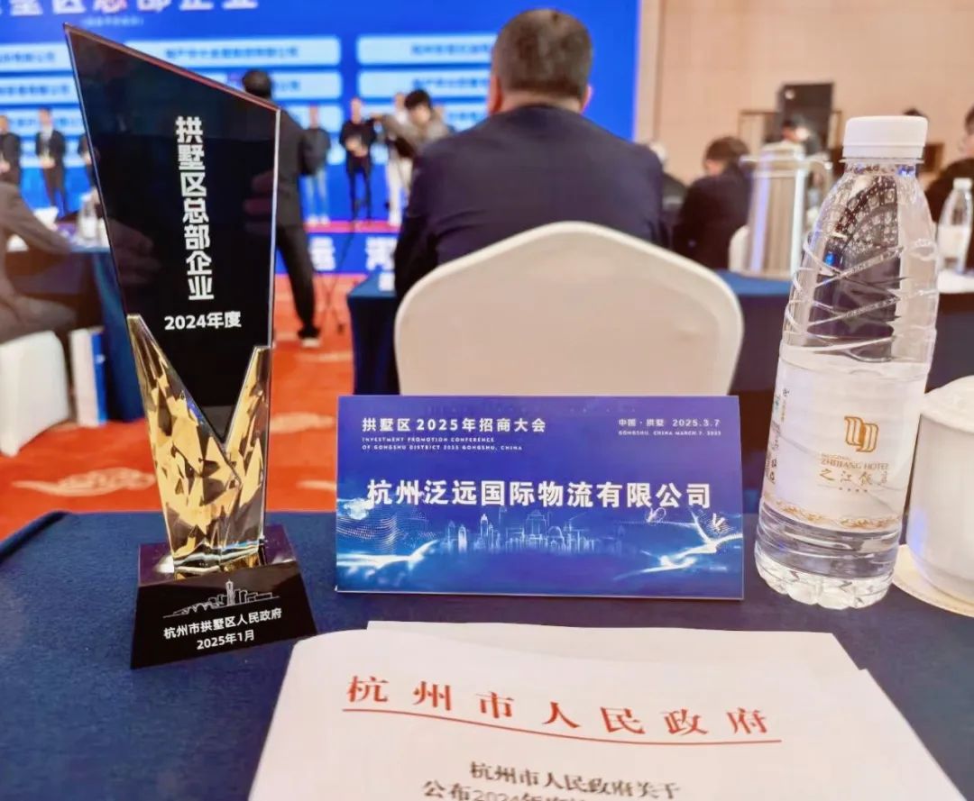 会上,区领导为64家拱墅区总部企业授牌,泛远国际作为跨境电商物流领域的行业龙头和隐形冠军,被正式授予“2024年度拱墅区总部企业”称号。